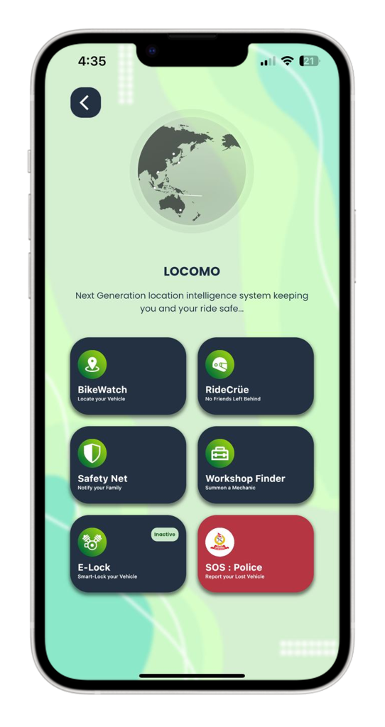 Single tap feature on your LOCOMO app to alert Nepal Police in case of suspected vehicle theft.